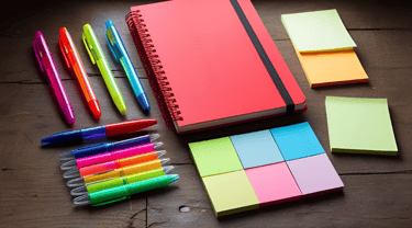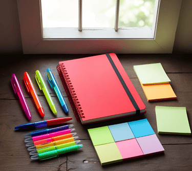 Notebooks, pens, pencils, binders, folders, backpacks, highlighters, stickers, sticky notes, desk organizers, pencil cases, and much more!
