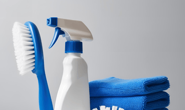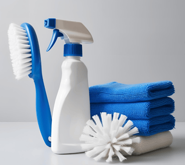Sponges, microfiber cloths, brooms, mops, trash bags, disinfectant wipes, shower curtain, shower liner, bath mat, scrub brushes, and much more!
