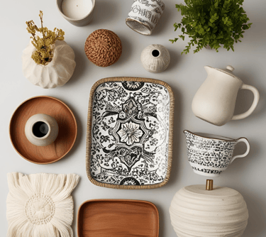 Wall art, picture frames, candles, vases, artificial plants, table runners, blankets, and much more!