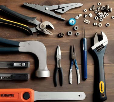 Screws, nails, hooks, tape measures, wrenches, pliers, screwdrivers, sandpaper, adhesive tape, work gloves, and much more!