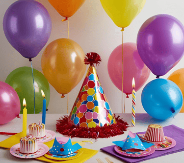 Party decorations, balloons, tableware, party hats, banners, disposable cups, napkins, tablecloths, and much more!