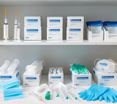 Syringes, bandages, gauze pads, surgical masks, gloves, antiseptic wipes, thermometers, IV supplies, medical tape, and much more!